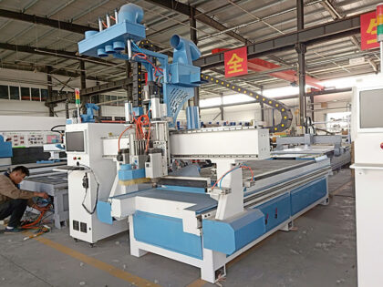 The dual-spindle CNC nesting machining center is equipped with a drilling package, equipped with two 6.0kw air-cooled spindles, 9-hole drilling package, and independent operation. Fast, high precision, high efficiency, and stability. Metal holes of different diameters can be processed. Processing of various types of furniture, such as panel furniture, office furniture, cabinets, wardrobes, etc.